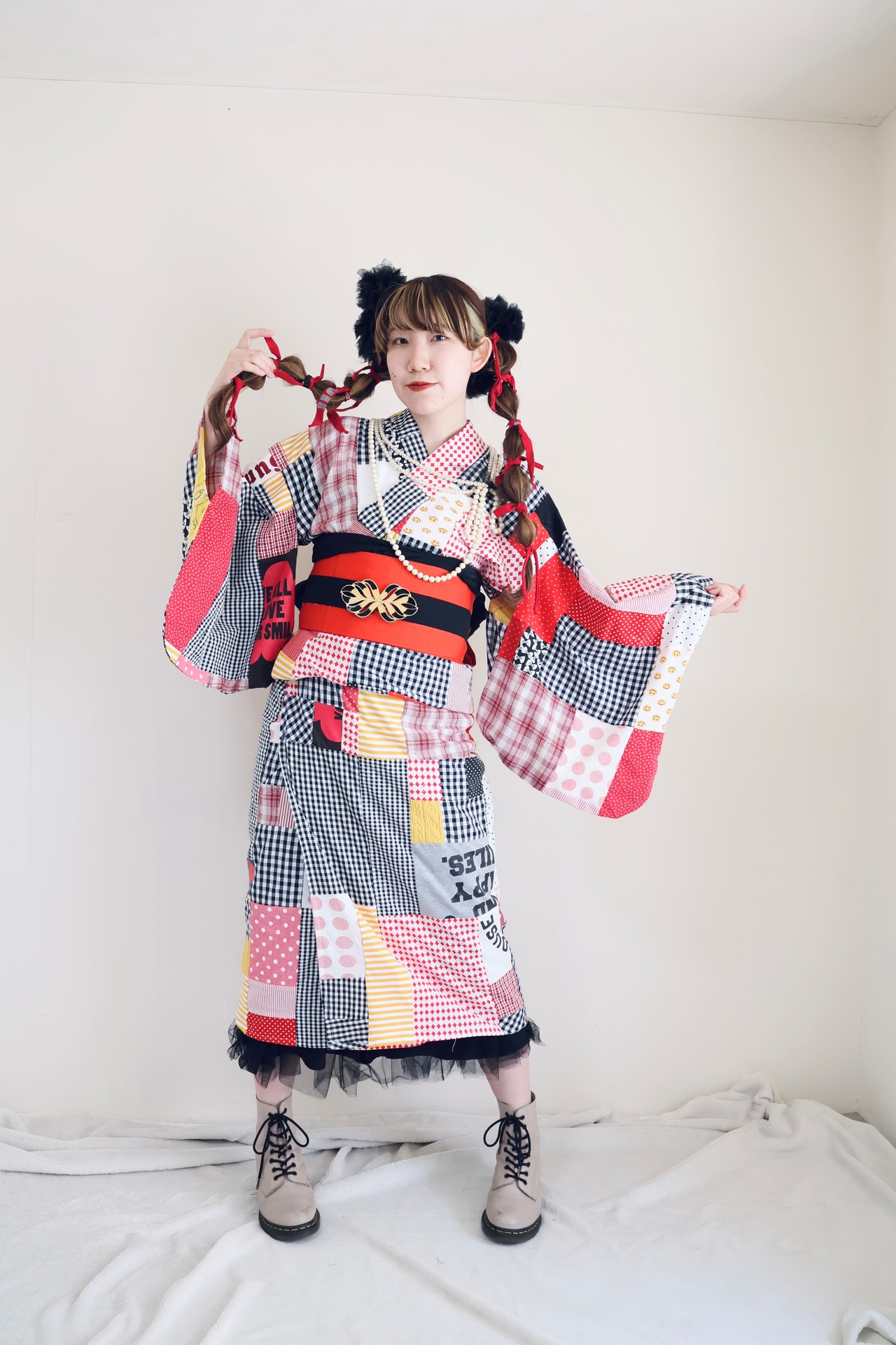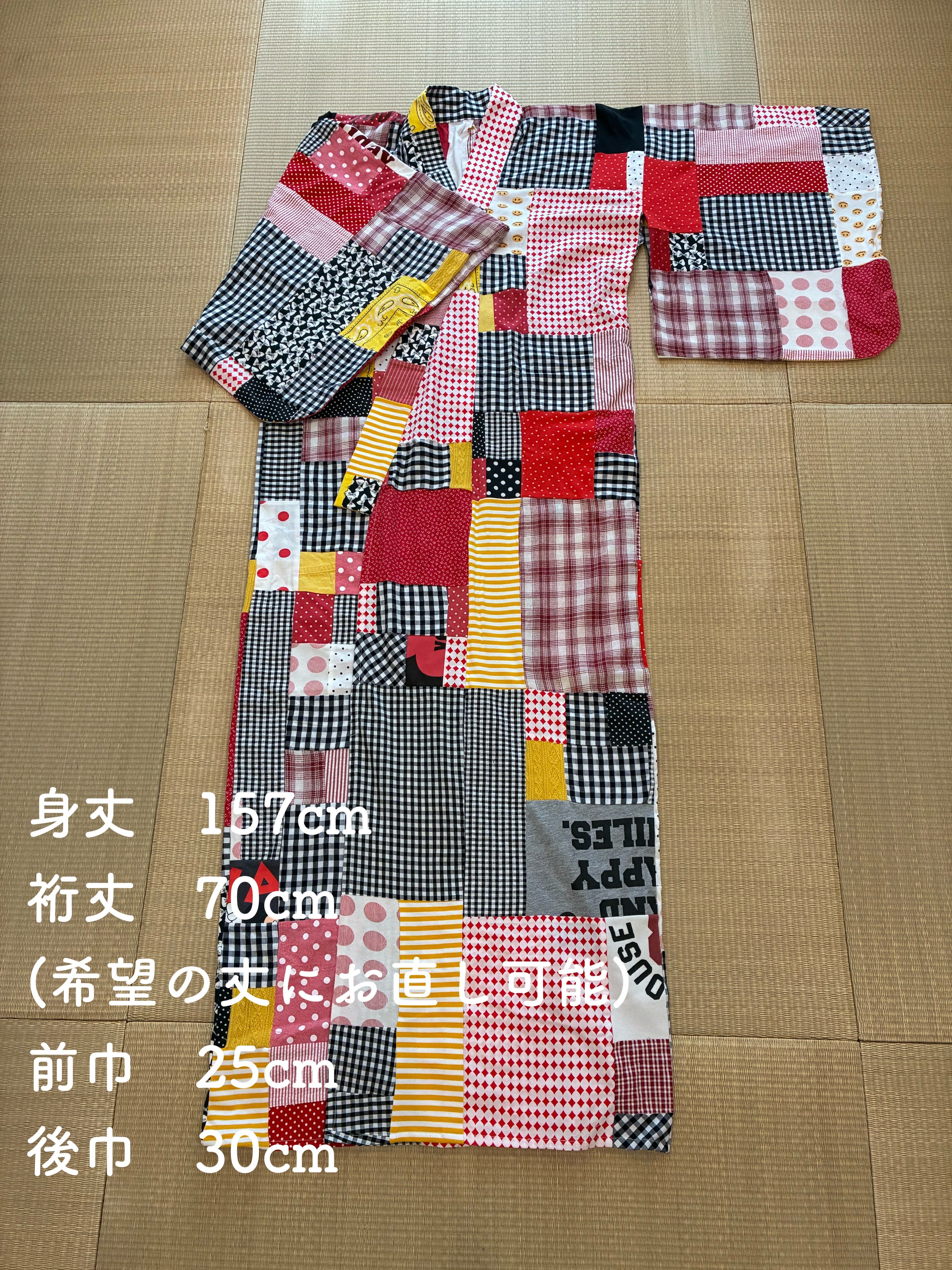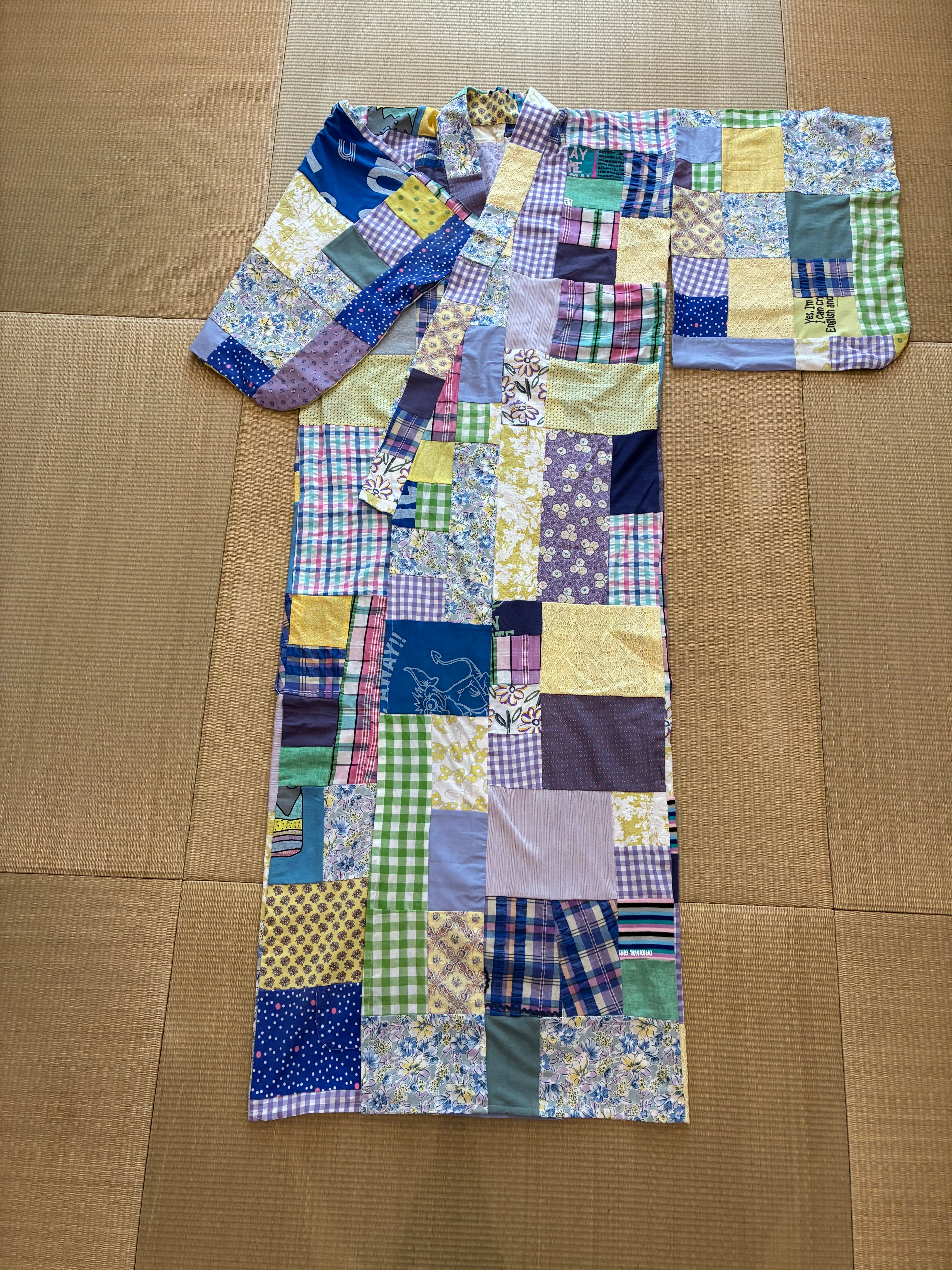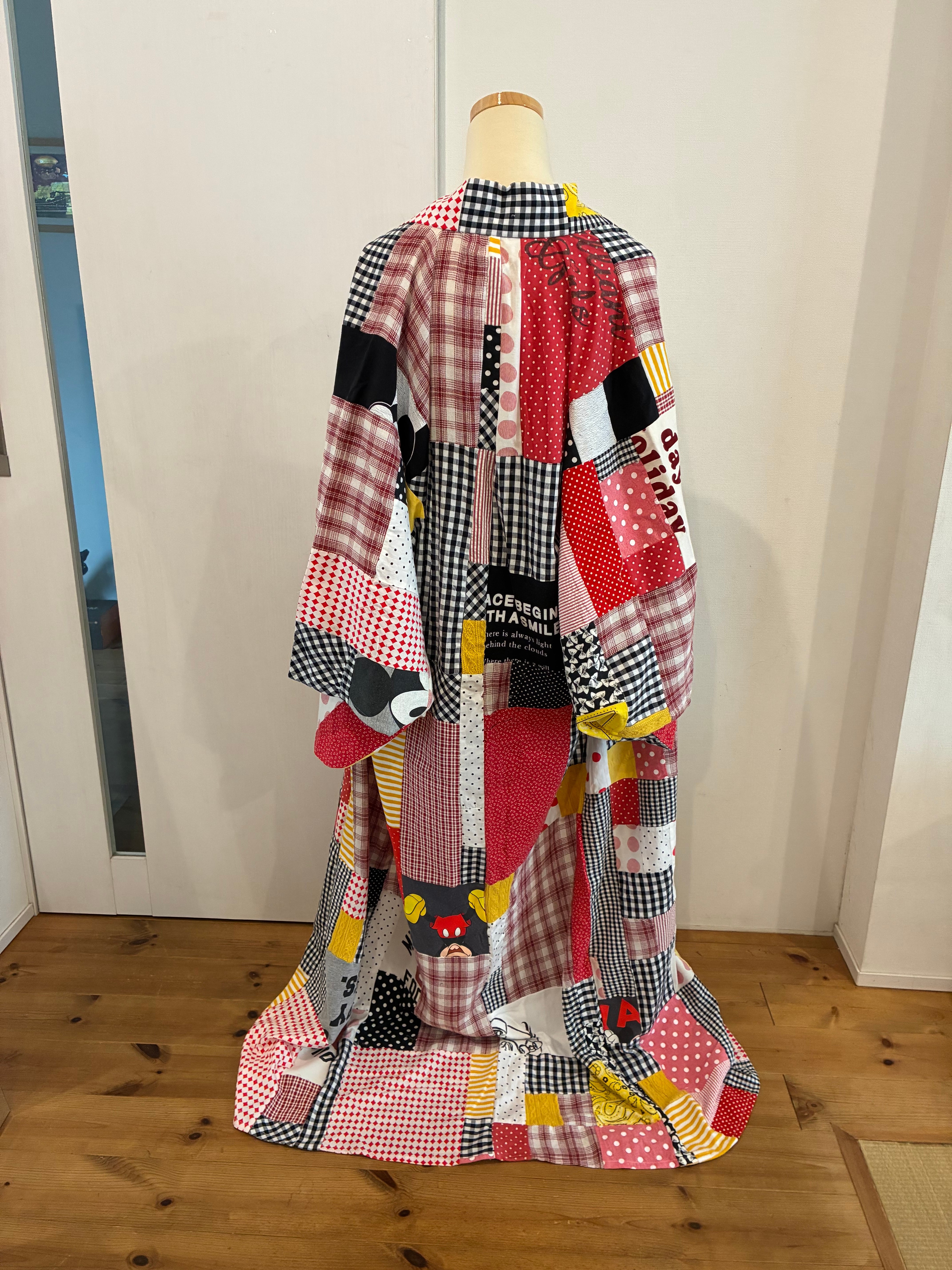 地域で集めた古着をパッチワークして作った唯一無二のリメイク着物です!