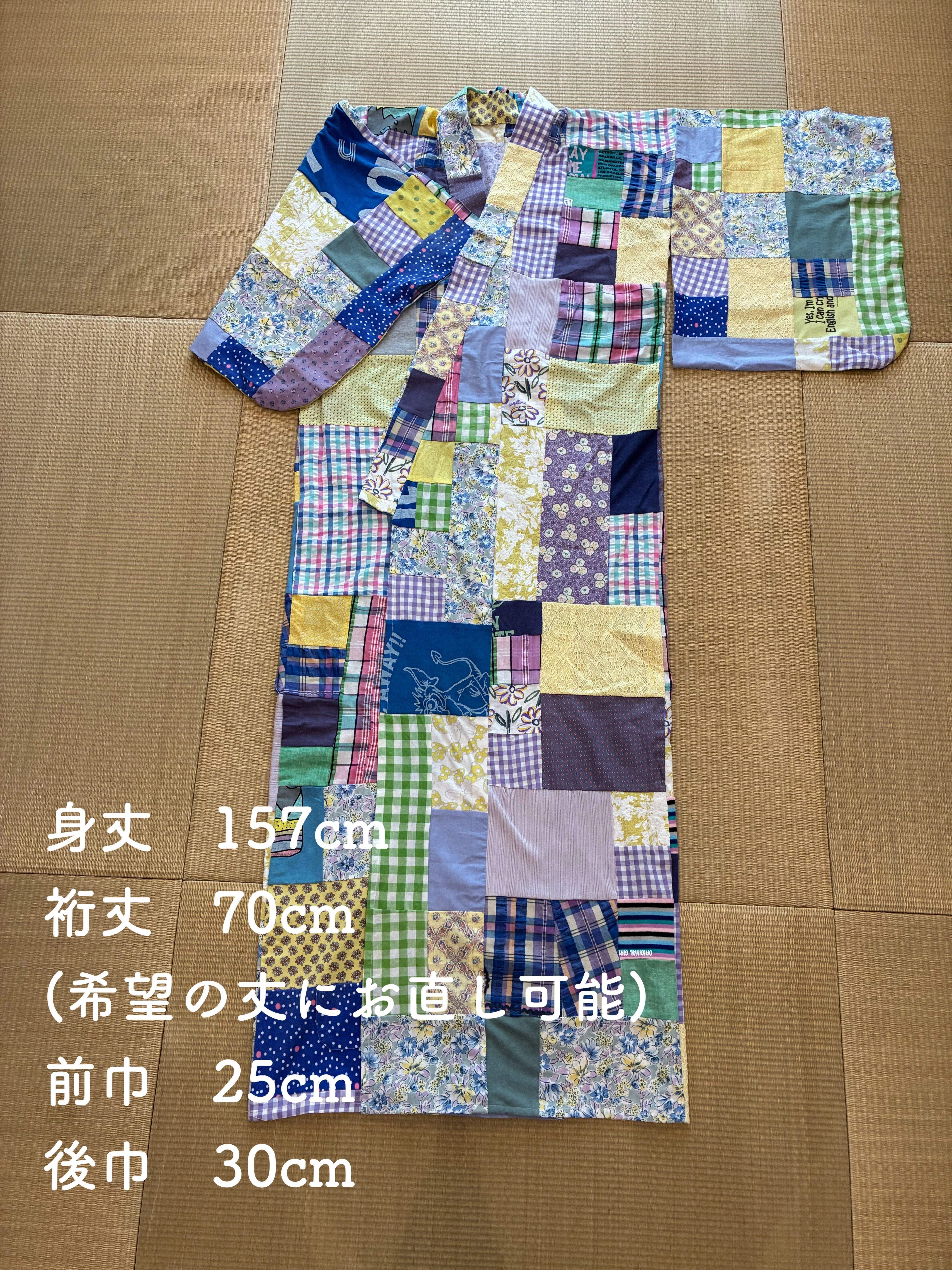地域で集めた古着をパッチワークして作った唯一無二のリメイク着物です!