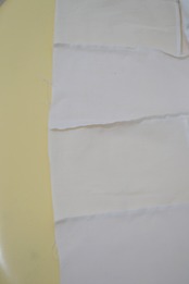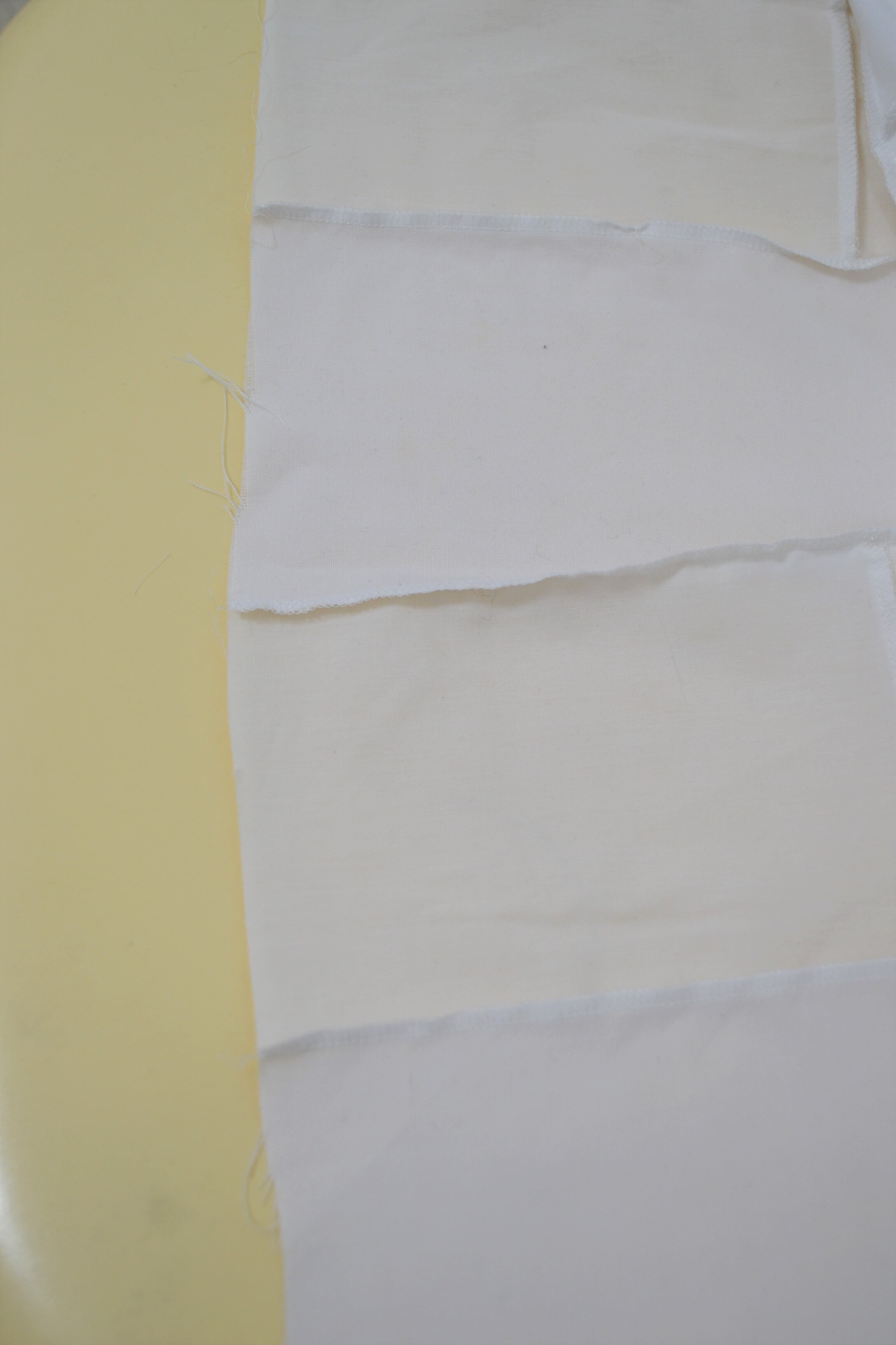 古着を小さく切って一枚一枚つなぎ合わせてパッチワークにしました。
