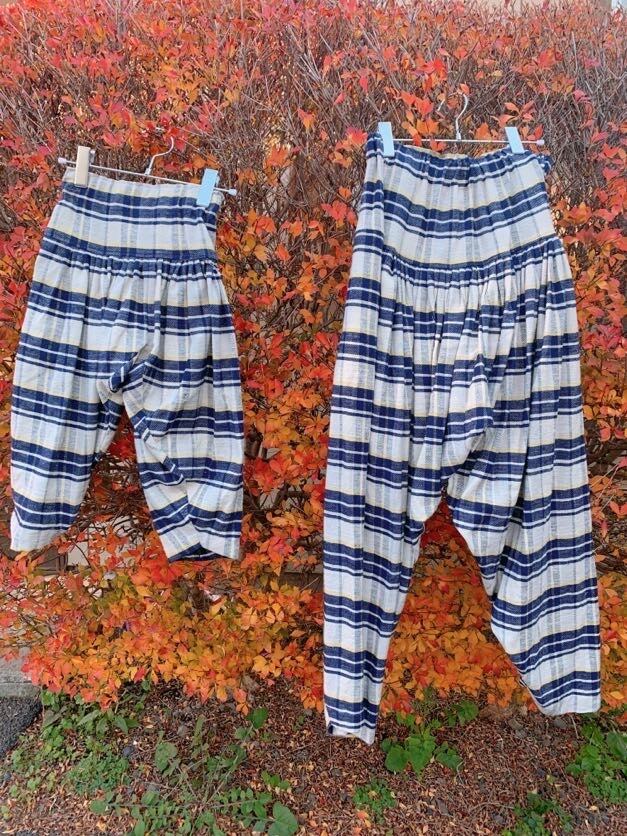 パキスタンの伝統的なパンツの形を日本人が普段着ではけるようにアレンジしました。