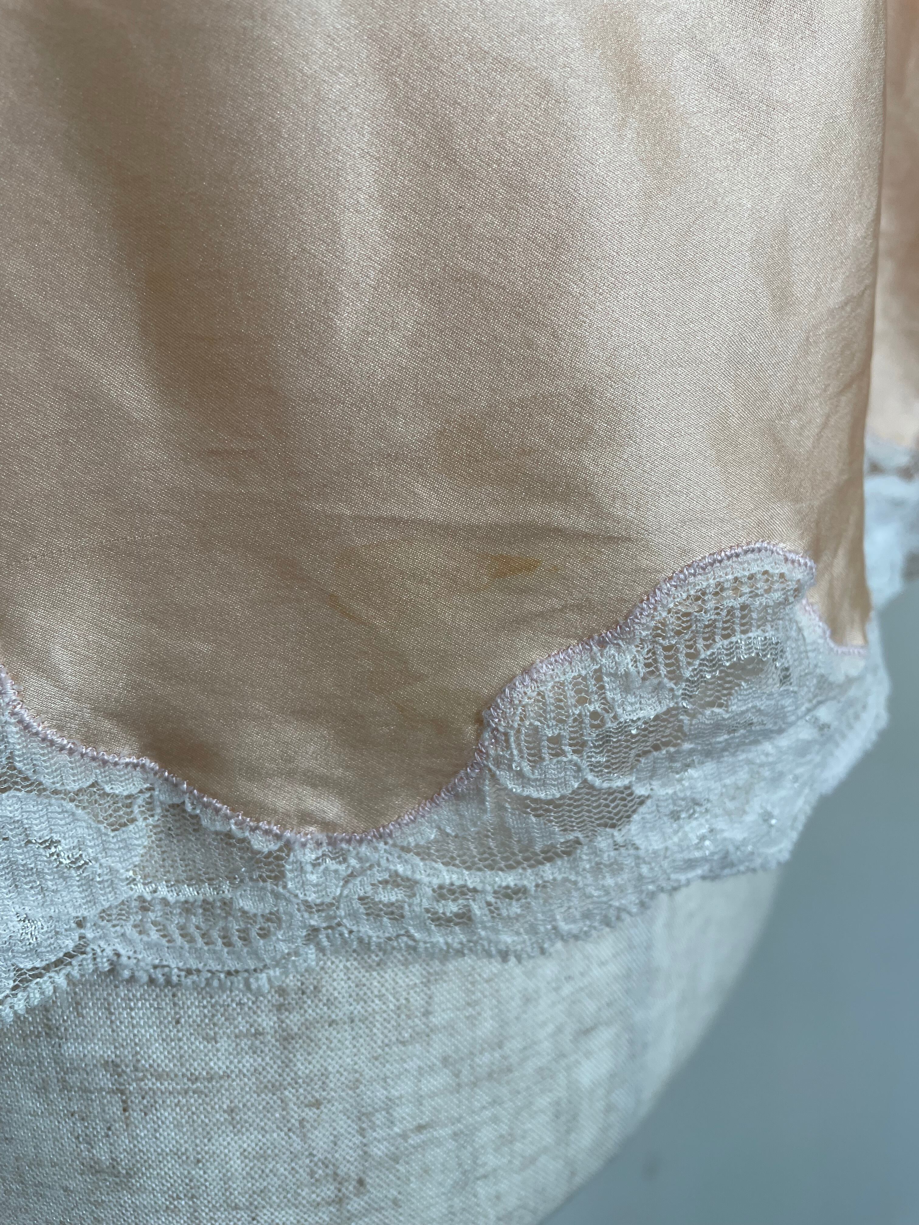ネックラインや裾にレースがありシルクの光沢感もある上品なものになっています。