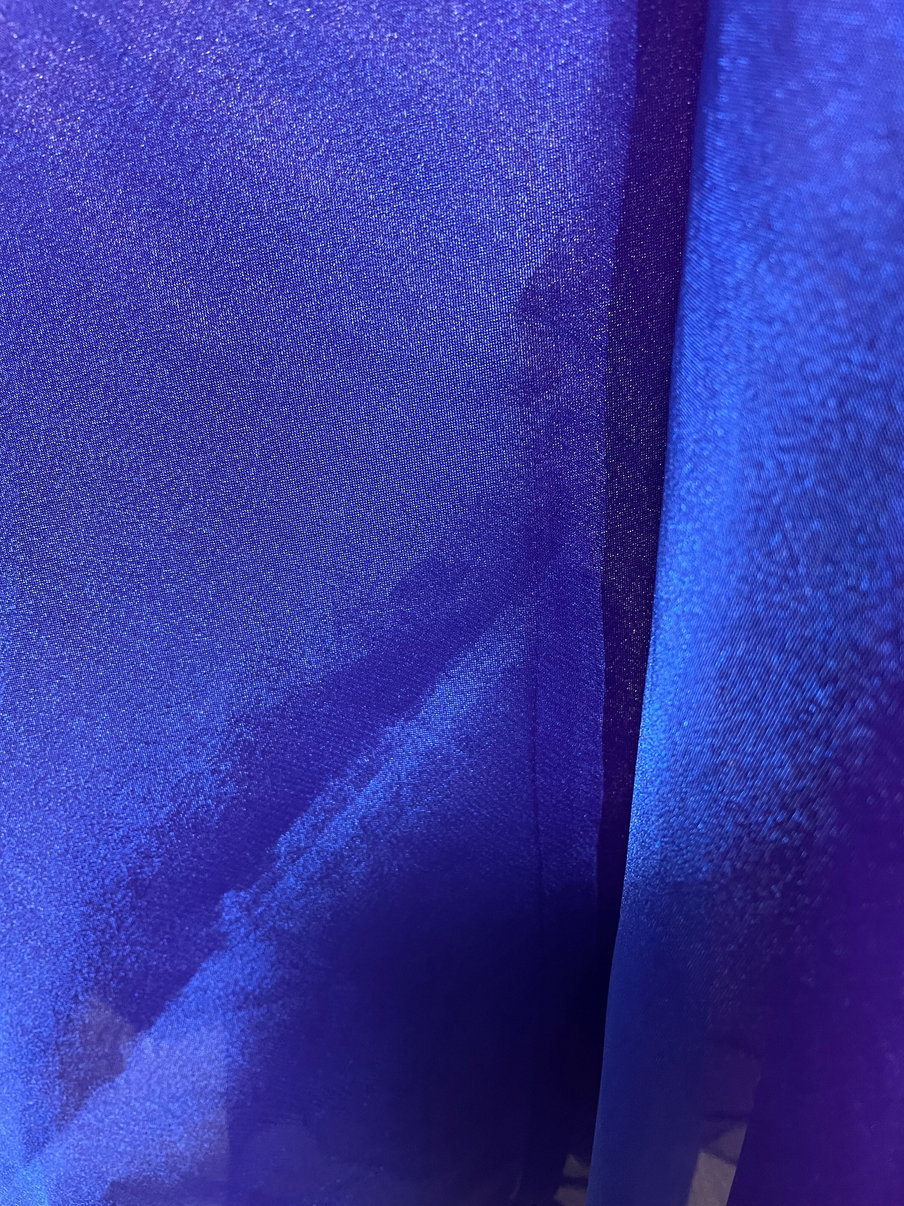 青みがかったパープルでインナーにもパープルのサテン生地を使っているため透けることもなく一枚で着られます。