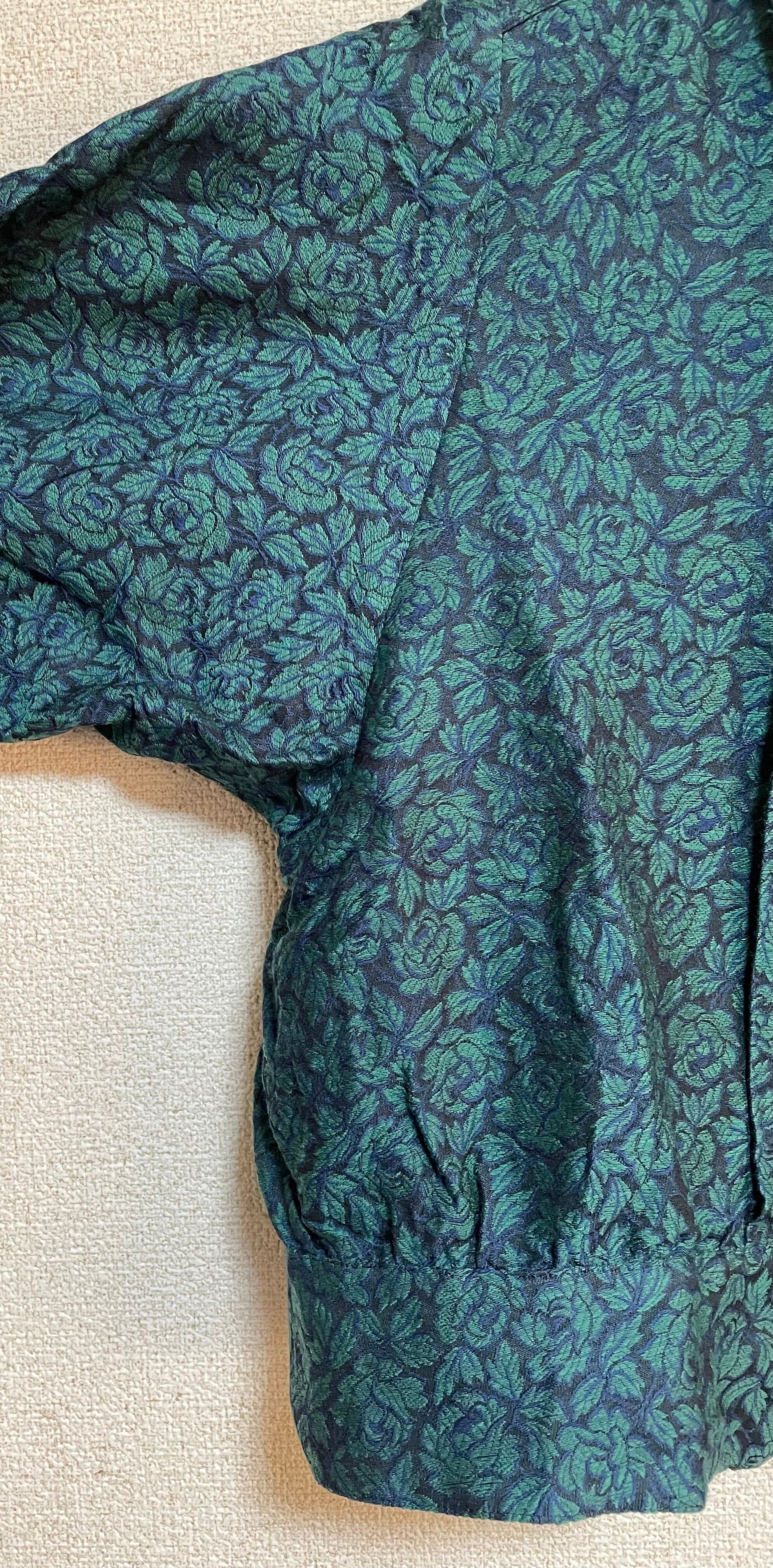 肩パット入りのショルダーがレトロ感をだしていて、さらに深いグリーンの色合いがかっこよく見える一枚です。